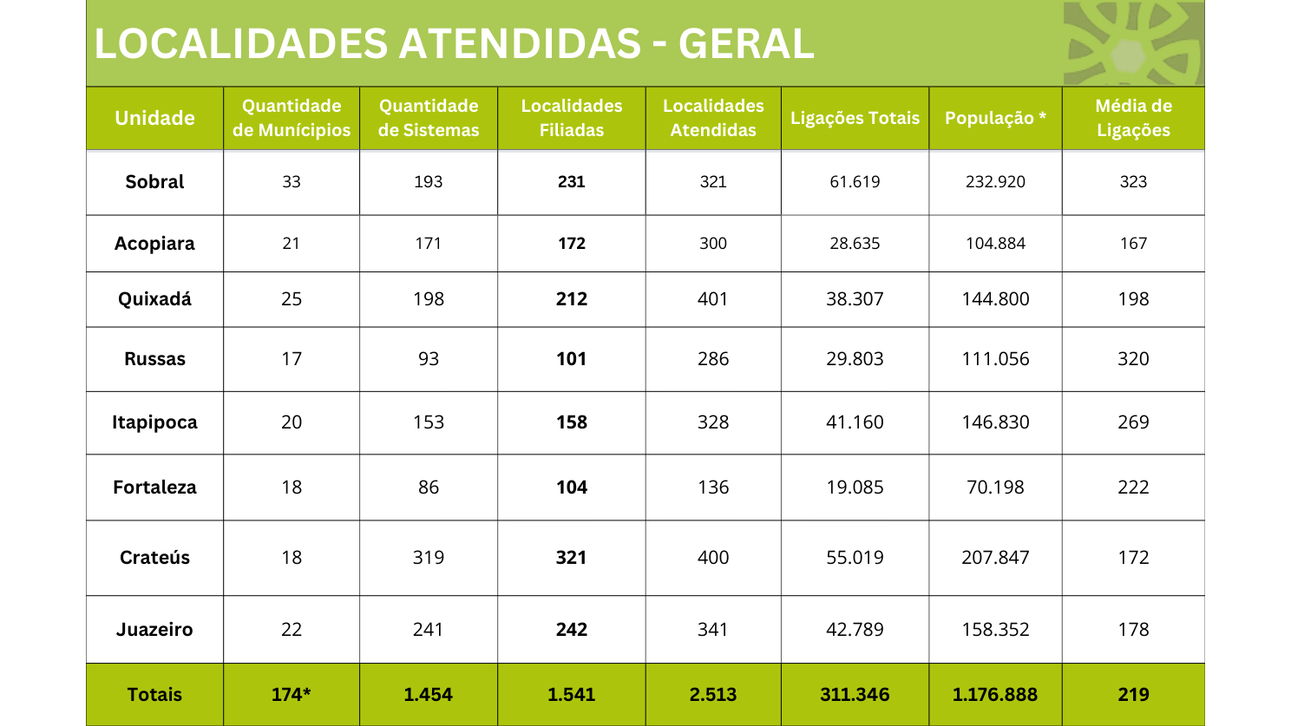 * Obs : Embora o total da coluna ” Quantidade de Municípios” some 175, o número real de municípios atendidos pelos SISARs é 164. Isso ocorre por que alguns municípios contam com a atuação de mais de uma unidade do SISAR, em um modelo de gestão compartilhada.